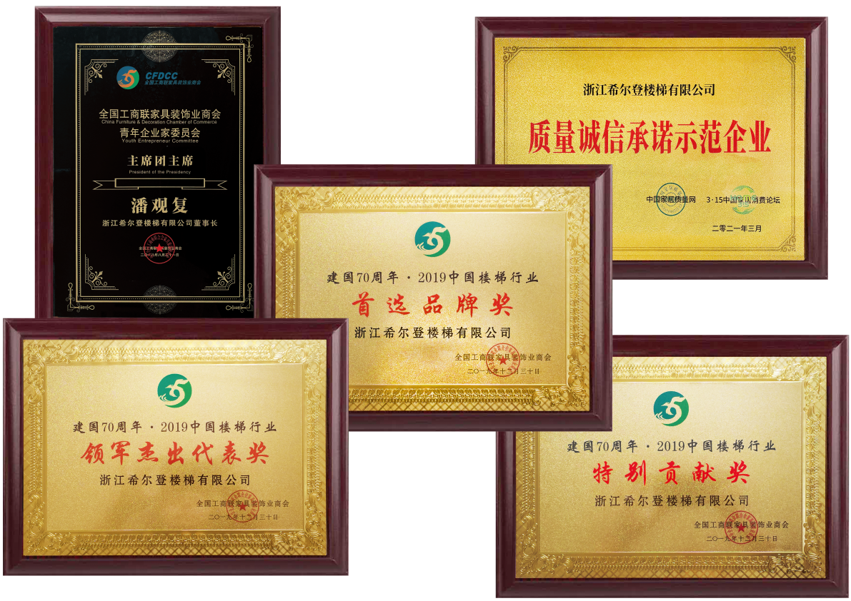 在不斷提升希爾登品牌和企業(yè)實(shí)力的同時(shí),希爾登一直熱心參與樓梯行業(yè)的健康發(fā)展;參與創(chuàng)立全國工商聯(lián)樓梯專委會(huì)并被推選為中國樓梯品牌聯(lián)盟執(zhí)行主席和樓梯專委會(huì)執(zhí)行會(huì)長;憑借在行業(yè)內(nèi)的專業(yè)地位,希爾登參與了《木質(zhì)樓梯》,《木質(zhì)樓梯安裝驗(yàn)收和使用規(guī)范》,《住宅內(nèi)用樓梯》,《建筑用玻璃與金屬護(hù)欄》四個(gè)國家和行業(yè)標(biāo)準(zhǔn)的起草工作。先后榮獲“中國樓梯十大品牌”、“金木樓梯領(lǐng)軍品牌”、“中國泛家居發(fā)展中企業(yè)500強(qiáng)”、“中國家裝行業(yè)金鉆獎(jiǎng)”、“金屬木質(zhì)樓梯一級(jí)資質(zhì)”等二十多個(gè)榮譽(yù)和稱號(hào)。我們幾乎參與和見證中國樓梯發(fā)展歷程中的所有重大事件。希爾登過去,現(xiàn)在和未來都是中國樓梯的標(biāo)桿企業(yè)。